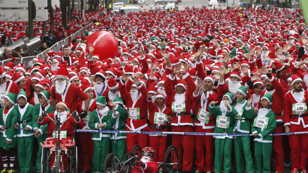 Miles de Papás Noel corren por caridad en Estocolmo