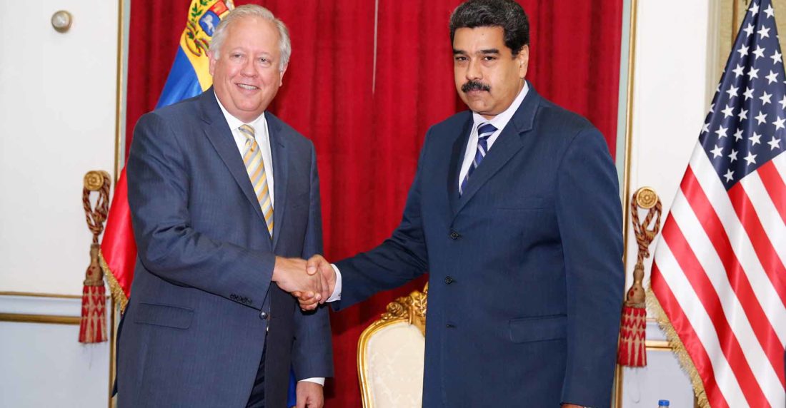 El presidente de Venezuela, Nicolás Maduro, y el subsecretario de Estado de EEUU para Asuntos Políticos, Thomas Shannon, se reunieron este miércoles en Caracas para intentar abrir un diálogo entre los dos países que mantienen sus relaciones diplomáticas bajo mínimos desde 2010.