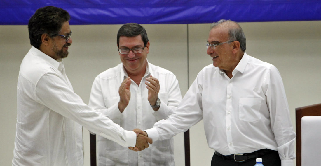 El representante de las Fuerzas Armadas Revolucionarias de Colombia (FARC) señaló que este acuerdo de paz es «el más anhelado de Colombia» y que «tendrá que ser convertido (…) en norma pétrea que garantice el futuro de dignidad para todos y todas».
