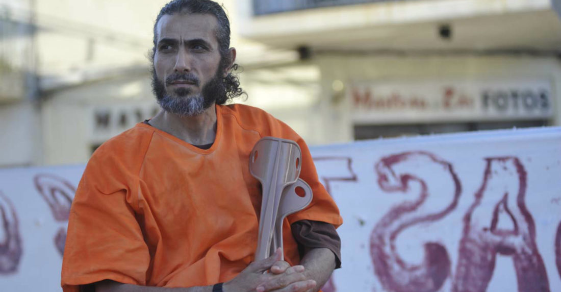 Visiblemente debilitado, sentado en una pequeña silla delante de una mesa con un mantel de colores, Diyab, con pelo recogido y larga barba, explicó su decisión de volver a profundizar su huelga de hambre que adelanta hace casi 50 días, cesando de ingerir líquidos el lunes si no tiene respuesta de algún país que lo reciba.