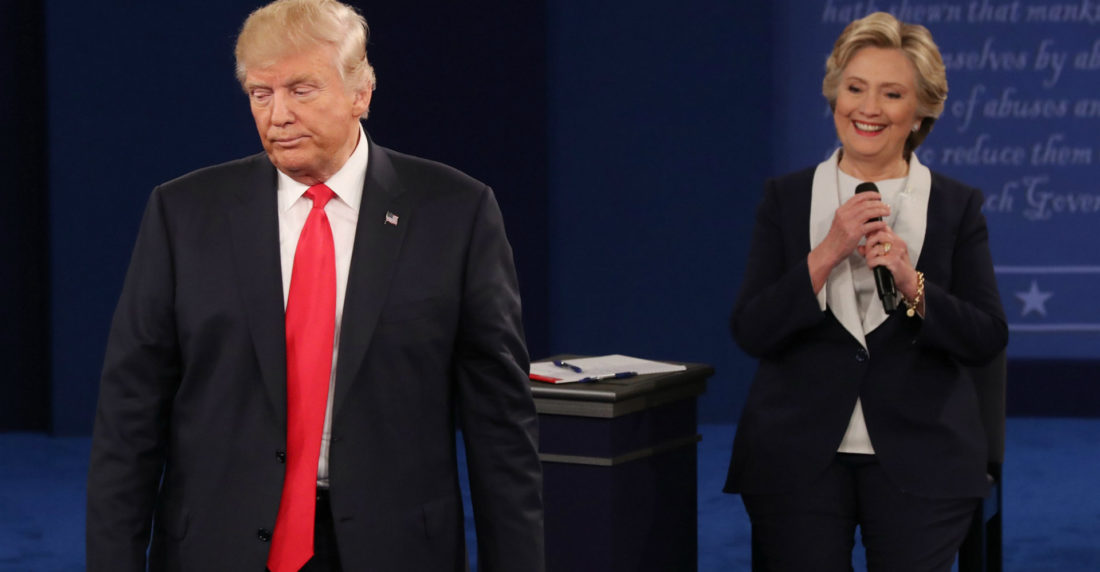 Los otros dos aspirantes a la presidencia Gary Johnson, del Partido Libertario, y Jill Stein, del Partido Verde, recibieron el 9% y 2% de respaldo, respectivamente.