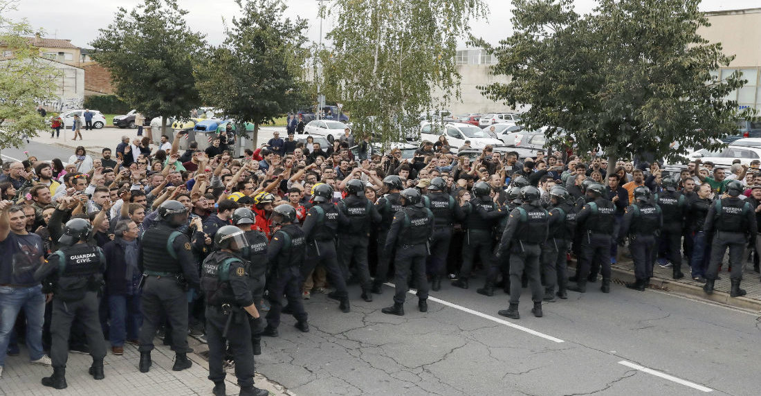 En medio de una notable pasividad de la Policía regional catalana (Mossos d’Esquadra), que no desalojó colegios ocupados previamente por ciudadanos ni cerró otros abiertos, agentes de la Policía Nacional y la Guardia Civil españolas empezaron a desplegarse a primera hora por numerosos centros.