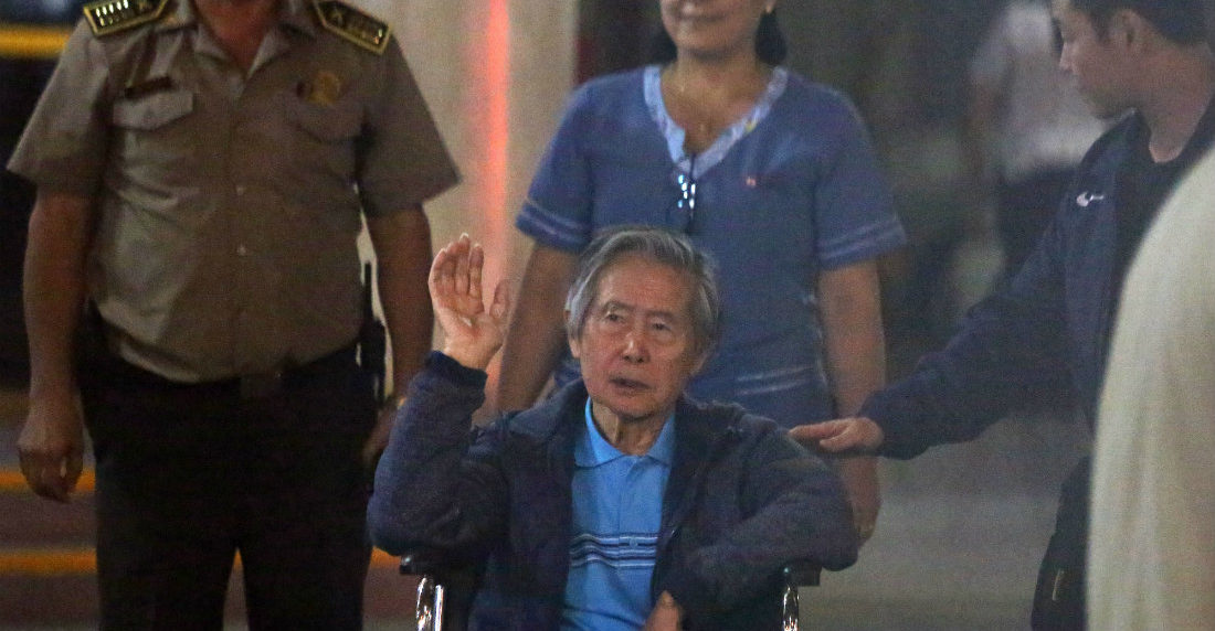 Durante su recorrido, Fujimori, de 79 años y quien cumplía una condena a 25 años de cárcel por delitos de lesa humanidad, lució un semblante demacrado, pero se animó a saludar con una mano a los reporteros que seguían el recorrido de su vehículo.