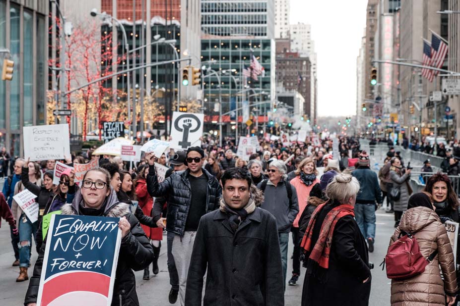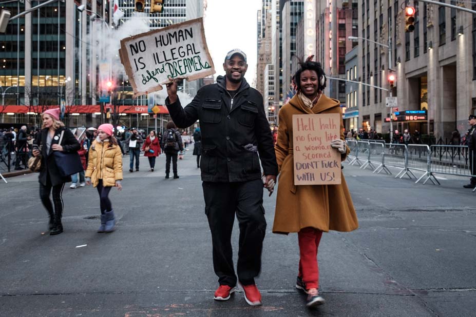 Los carteles llevados por los manifestantes y los discursos reflejaban la multiplicidad de los motivos de protesta: desde la defensa de los derechos de los inmigrantes hasta el reclamo de una mayor igualdad de género, pasando por las acusaciones de incompetencia formuladas contra el presidente Trump.