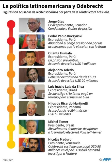 El escándalo también salpicó a Venezuela, donde el grupo brasileño dijo haber pagado 98 millones de dólares. El presidente Nicolás Maduro es sospechoso, pero la justicia, acusada por la oposición de servir a los intereses del jefe de Estado, desestimó cualquier investigación.