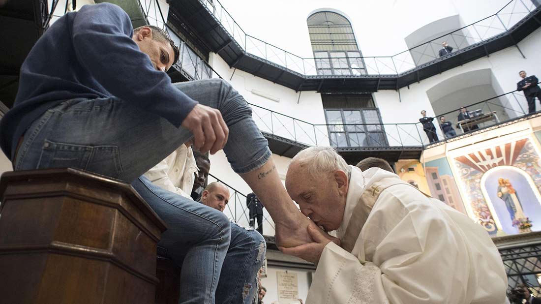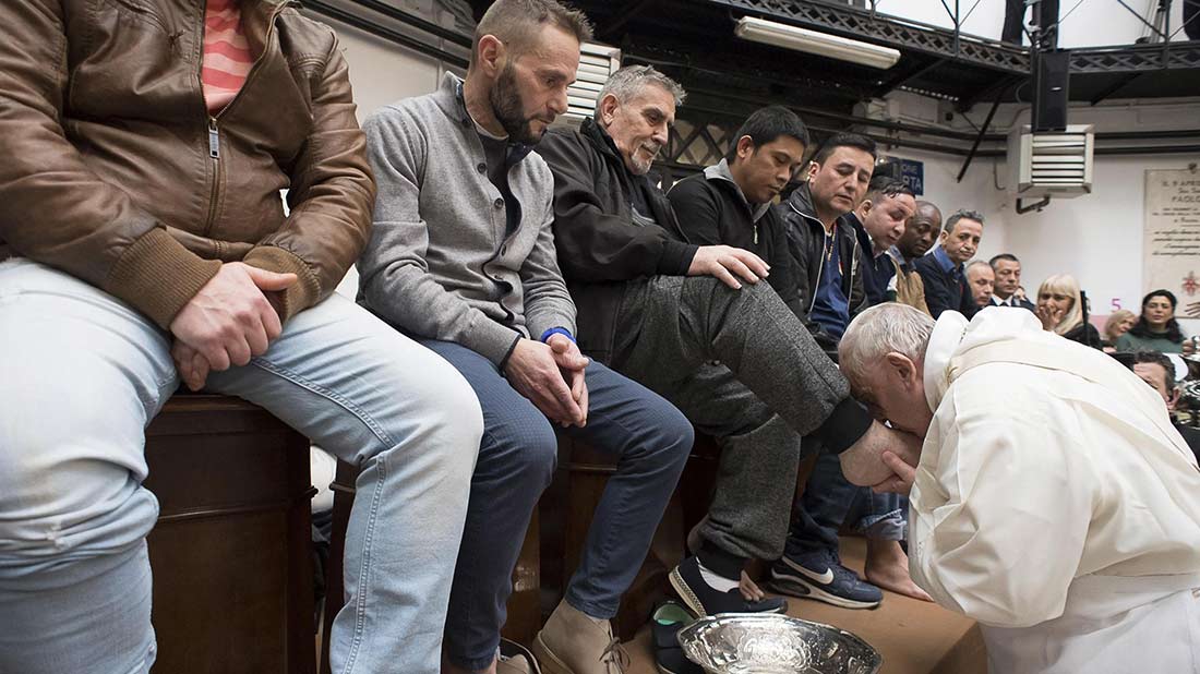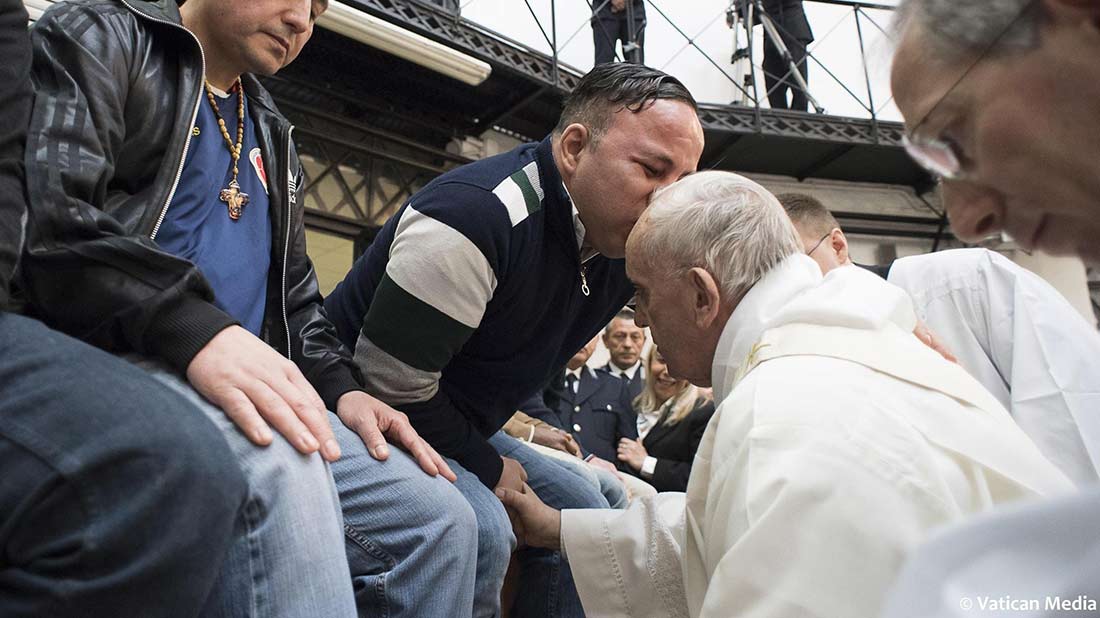 Después de una breve reunión privada con los presos enfermos, el papa celebró el jueves en la tarde la misa de la Última Cena y el rito del lavado de pies con doce detenidos provenientes de siete países distintos en la prisión romana para hombres de Regina Coeli.