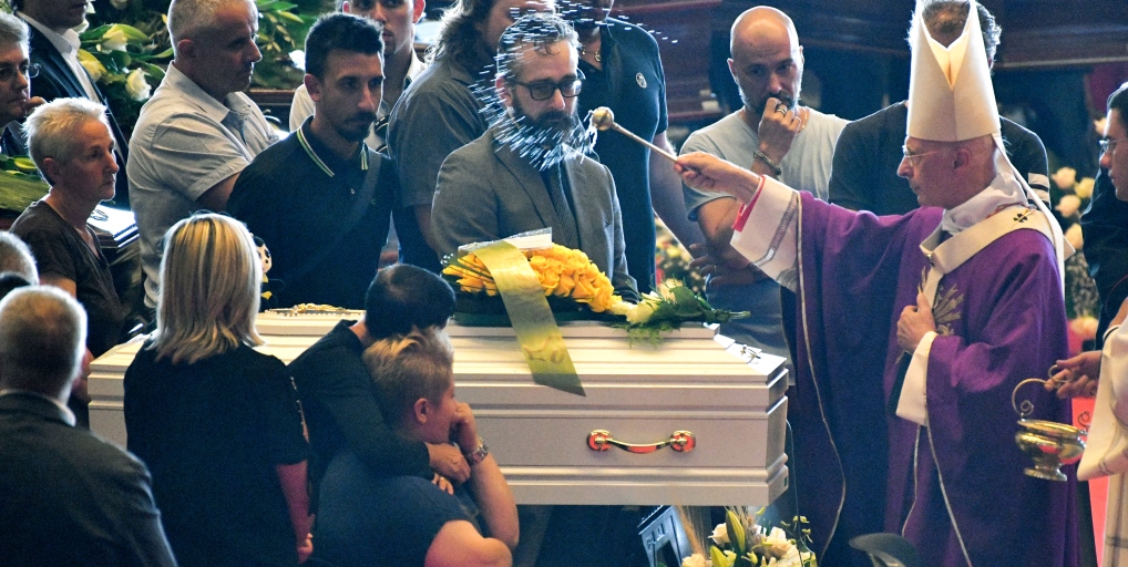 Un poco más adelantado, un pequeño ataúd blanco: el de Samuele, de 8 años, caído al vacío junto a sus padres, cuando la familia iba de vacaciones a Cerdeña.