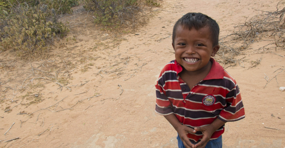 Nacer en La Guajira, en el extremo noreste de Colombia. puede ser una suerte. Los niños wayuu aprenden bailes y el pastoreo de chivos desde temprana edad, así como a montar burro y a sobrevivir en el desierto. Pero en los últimos años, los niños wayuu también han tenido que aprender a luchar con la falta de alimento y de agua. Sus ancianos les cuentan que antes había lluvias suficientes para la siembra y los chivos, que los wayuu podían sobrevivir meses en el desierto sin tener que adquirir nada de las ciudades cercanas.