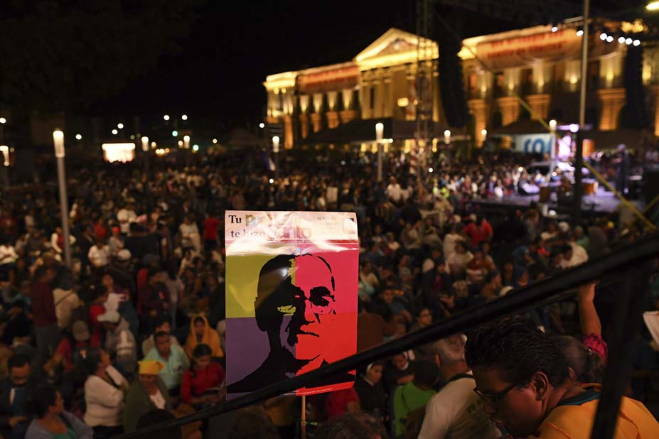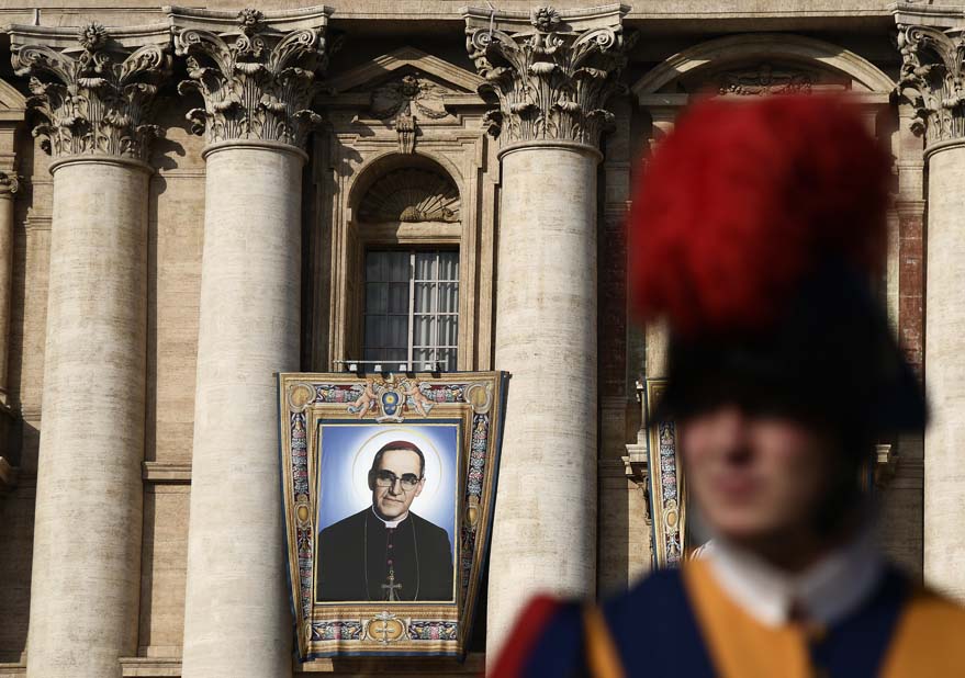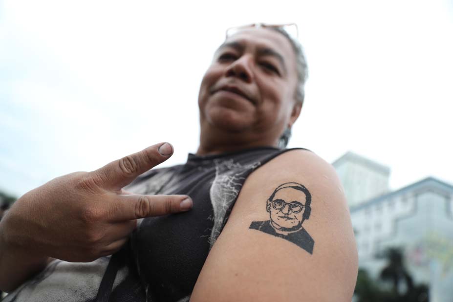 Francisco elogió del san Oscar Romero, asesinado en 1980 por un comando de la ultraderecha, que abandonó «la seguridad del mundo, incluso su propia incolumidad, para entregar su vida según el Evangelio, cercano a los pobres y a su gente, con el corazón magnetizado por Jesús y sus hermanos».
