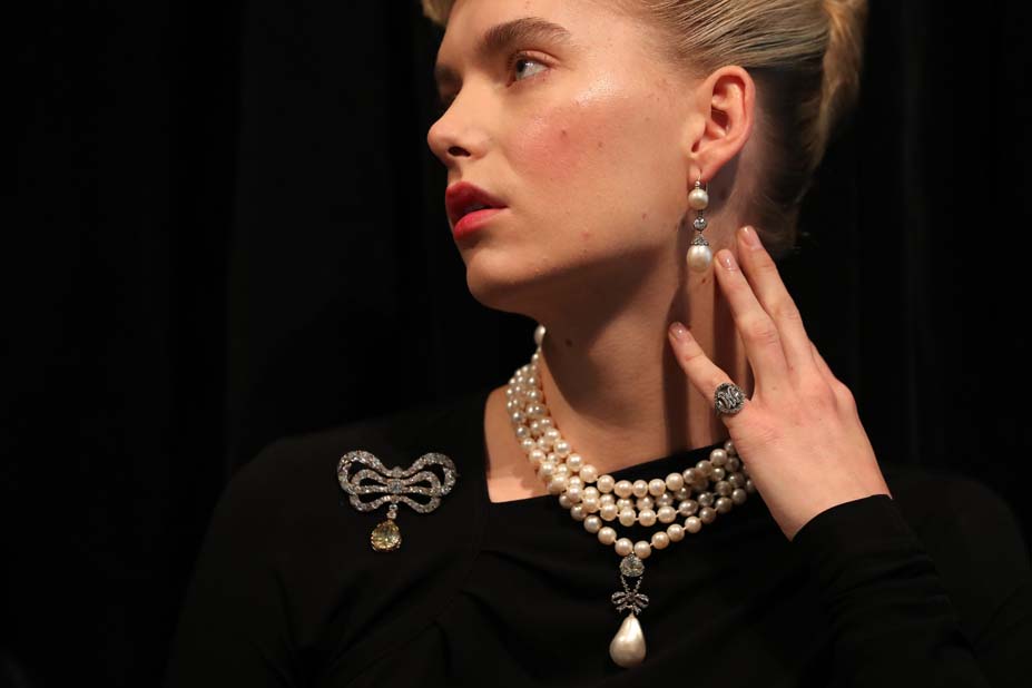 Entre los demás lotes estrella de la colección figuran también pendientes ornados de perlas finas (entre 200.000 y 300.000 dólares) y un collar de perlas finas, cuyo precio va hasta los 70.000 dólares.