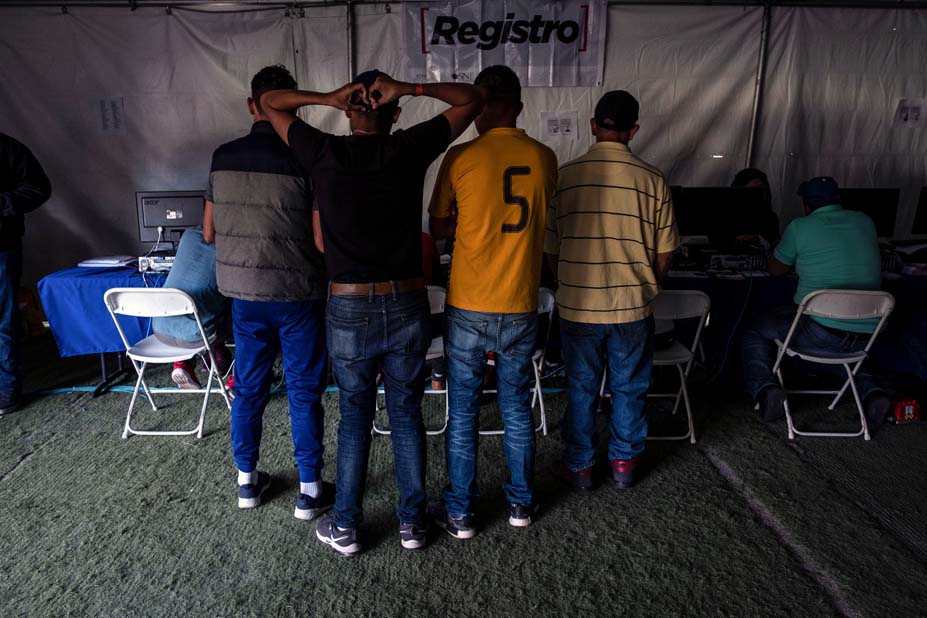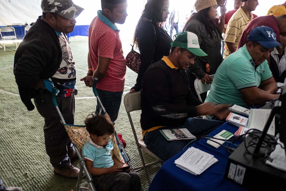 Bajo una carpa blanca instalada cerca de su hacinado albergue en un barrio desfavorecido de Tijuana, cientos de migrantes hacen fila para entrar a una «feria del empleo» organizada expresamente para los miles de migrantes.