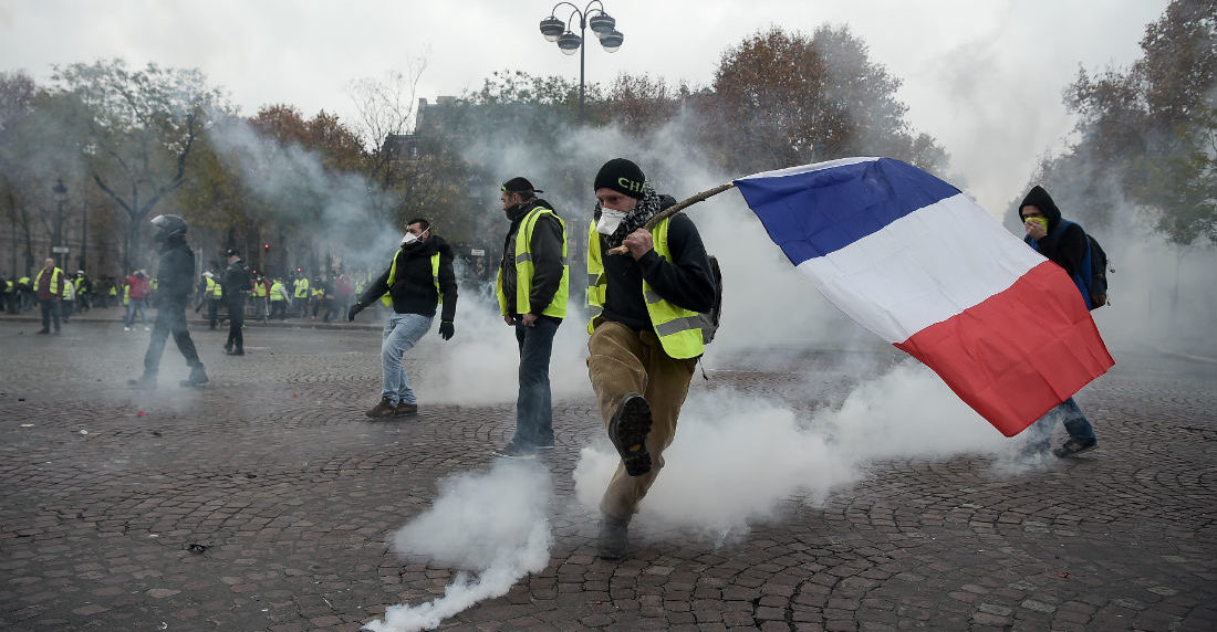 Los primeros choques entre fuerzas del orden y manifestantes, con cargas y lanzamientos de gases lacrimógenos, se produjeron ya a primera hora de la mañana en la avenida de los Campos Elíseos, que era el principal punto de concentración de los «chalecos amarillos».