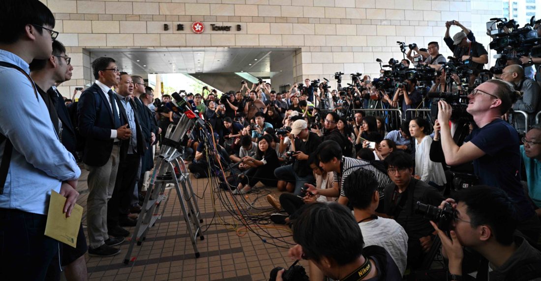 Los defensores de los derechos humanos denunciaron el juicio sobre la base de una ley confusa que amenaza la libertad de expresión en Hong Kong.