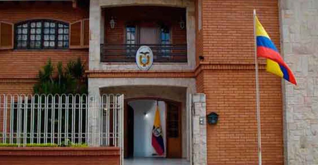 Los manifestantes se reunieron en las afueras del edificio donde funciona el consulado y donde opera la embajada de Venezuela en Ecuador, un país que reconoció como presidente interino a Guaidó y recibió las cartas credenciales de su embajador, René de Sola.