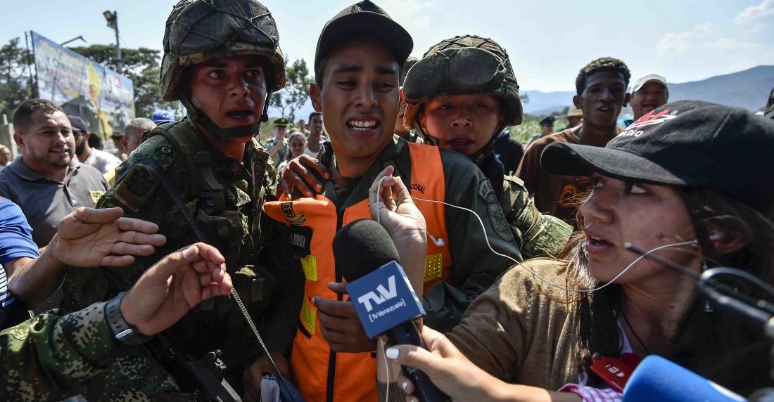 La frontera colombo-venezolana fue escenario de duros enfrentamientos entre cuerpos de seguridad y manifestantes a favor del ingreso del cargamento. A lo largo de la jornada, numerosos militares depusieron sus armas y cruzaron el puente Simón Bolívar, en Cucutá, manifestándose en contra del mandatario socialista.