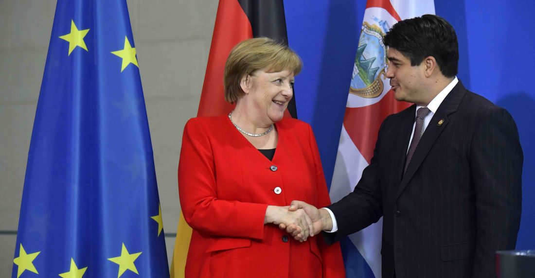 La canciller alemana, Angela Merkel, agradeció al presidente de Costa Rica, Carlos Alvarado, el papel que su país desempeña en la acogida de refugiados de Venezuela y su interés compartido en la búsqueda de una solución a la crisis.