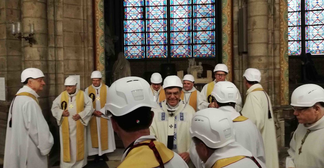 Monseñor Aupetit y el rector de Notre Dame, monseñor Patrick Chauvet, canónigos, voluntarios, personas que trabajaban en la catedral y empleados de la diócesis, una treintena de personas en total, asistieron al acto, celebrado en la parte de la capilla tras el coro, para garantizar la seguridad.
