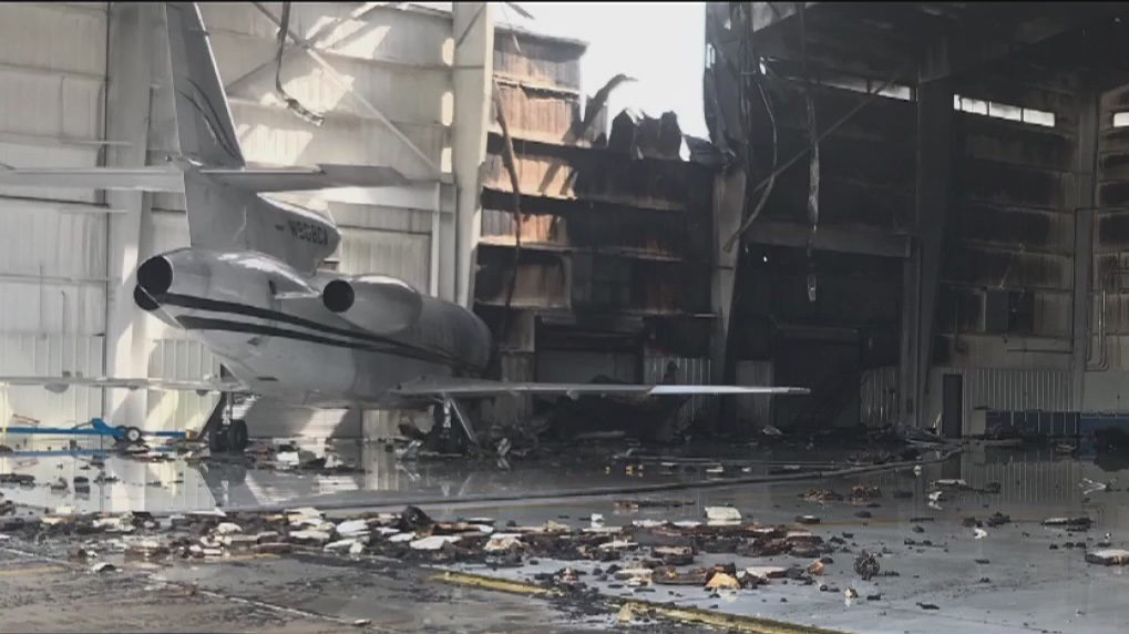 El aparato estalló en llamas al chocar contra el suelo y pese a que el incendio fue sofocado rápidamente, el hangar quedó casi totalmente destruido, saliendo una negra columna de humo de su tejado, afirmaron los testigos.