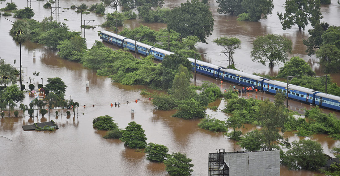 El tren Mahalaxmi Express se atascó debido a la inundación de las vías, explicó en una declaración la oficina de manejo de desastres de India en el estado de Maharashtra.