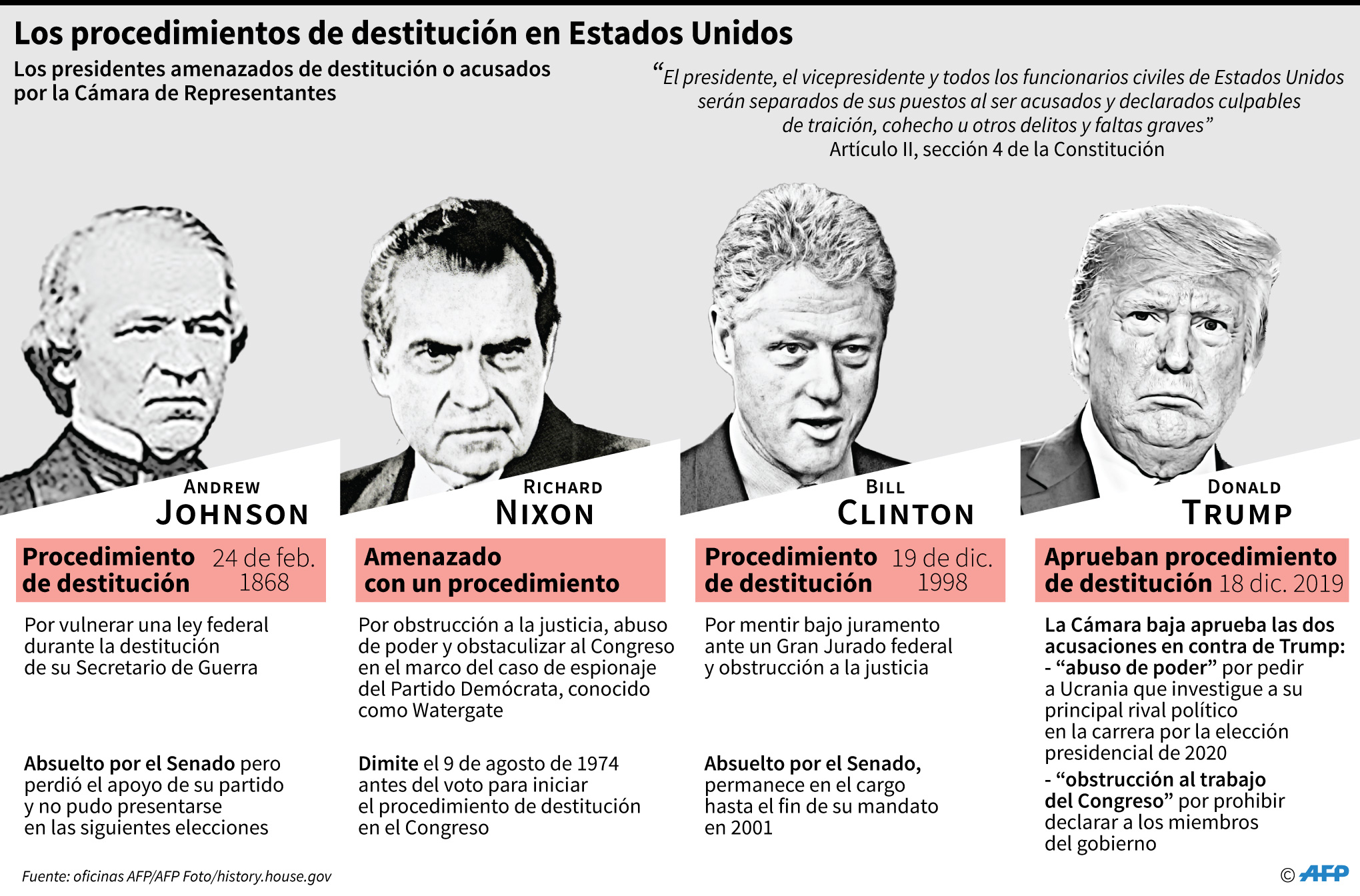 A Trump se le señala por dos cargos, abuso de poder pues el presidente no debe aprovechar su posición para sacar rédito político y obstrucción al Congreso, por intentar evitar que los legisladores conocieran de los tratos con Ucrania-.