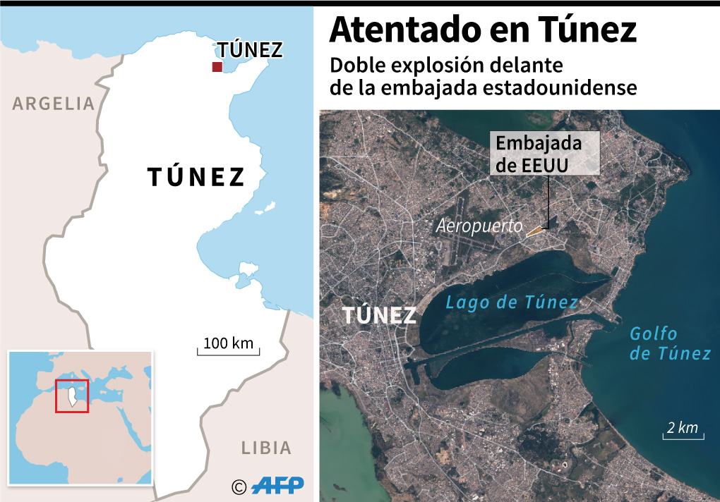 Doble atentado contra embajada de EE UU en Túnez deja 6 heridos