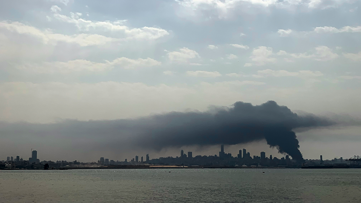 Una gran humareda negra que se eleva sobre el puerto es visible desde toda la ciudad y los bomberos y equipos de la Defensa Civil libanesa están en el lugar extinguiendo el fuego.