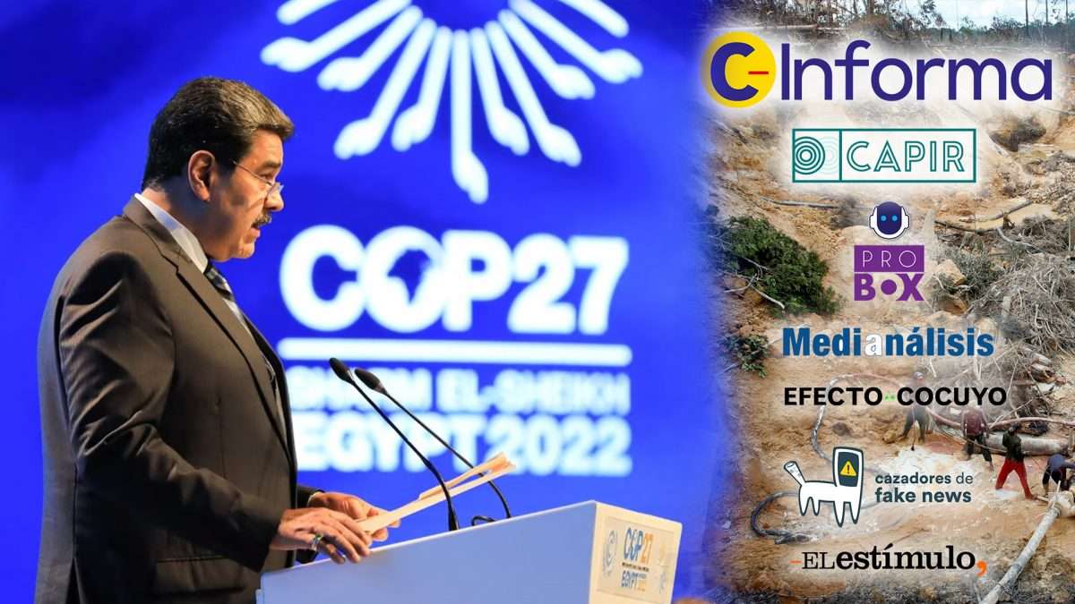 En diciembre de 2022, la Coalición Informativa C-Informa publicó cuatro trabajos periodísticos que revelaron el impacto desinformativo que produjo el discurso de Maduro en la ciudad de Sharm El Sheikh en donde generó una narrativa de supuesta protección del medio ambiente bajo la sombrilla del ecosocialismo; hizo política diplomática internacional en el marco de los bloqueos y sanciones; y usó el aparato comunicacional del Estado para contaminar la información, posicionar conversaciones inauténticas y hacer campañas desinformativas, incluso en redes sociales como Twitter.