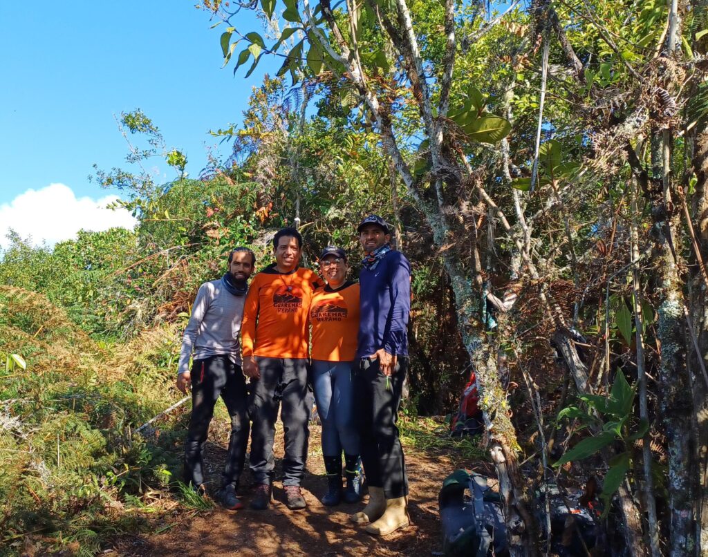 Equipo humano detrás del proyecto «La danta en el Waraira Repano» durante una visita a la zona protegida en febrero de 2024. Solo faltó un miembro, que es investigador. Foto: Fundación Guarenas Repano