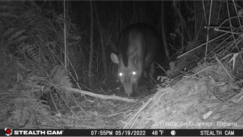 Danta captada por una cámara durante la noche. Foto: Fundación Guarenas Repano