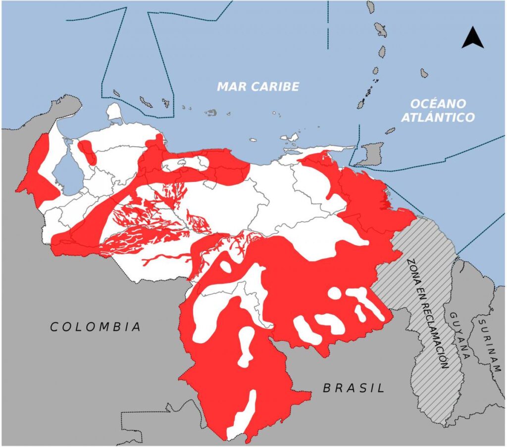 Mapa de la distribución de la Danta en Venezuela, según el Libro Rojo de la Fauna venezolana