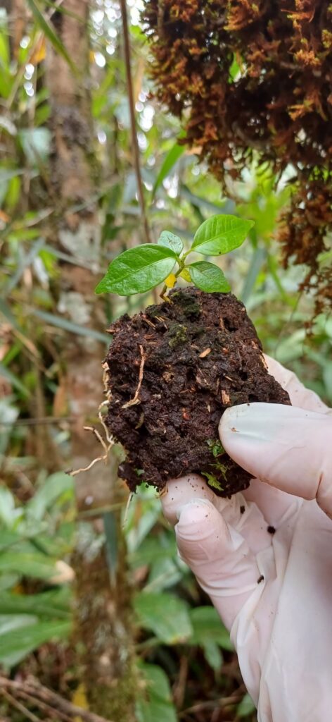 Excreta de danta con una planta creciendo en ella. Foto: Fundación Guarenas Repano