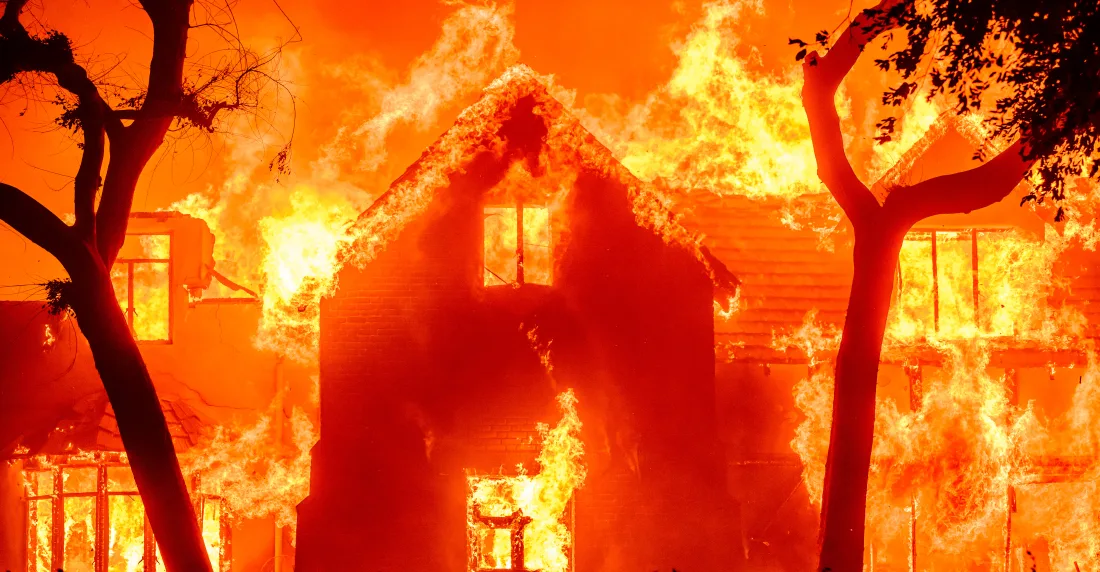 A home burns during the Palisades Fire in Pacific Palisades, California, on January 8, 2025. At least five people have been killed in wildfires rampaging around Los Angeles, officials said on January 8, with firefighters overwhelmed by the speed and ferocity of multiple blazes. (Photo by AGUSTIN PAULLIER / AFP)