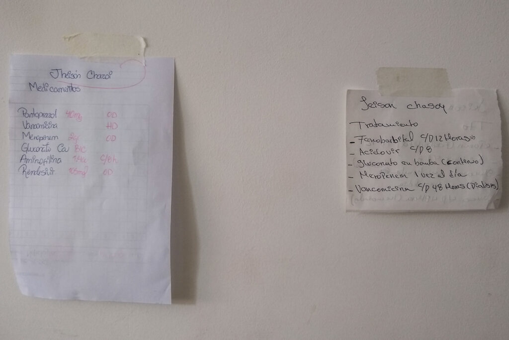 Y tiene sentido: Jheison no puede correr riesgos porque uno de los problemas constantes son las bacterias que invaden el catéter de su diálisis. Esa situación no solo la vive él, sino varios niños de la unidad de Nefrología del hospital.