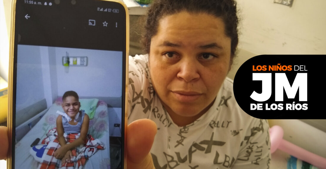 Diana Blanco cuida de su hijo sin apartarse de él desde abril 2023. Juntos hacen una rutina en el piso 4 de Nefrologia del J.M de los Ríos. Foto: Daniel Hernández.