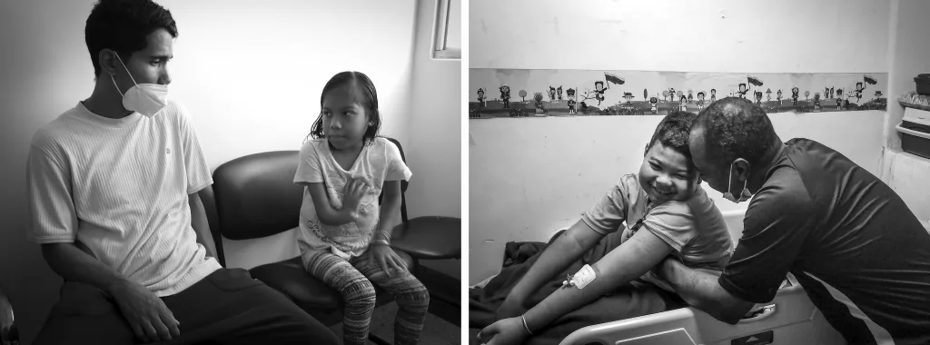 En la foto a la derecha, Maykol Brito es atendido por su papá, Marcos Brito, quien enviudó y desde entonces se encarga de su hijo con condición renal.