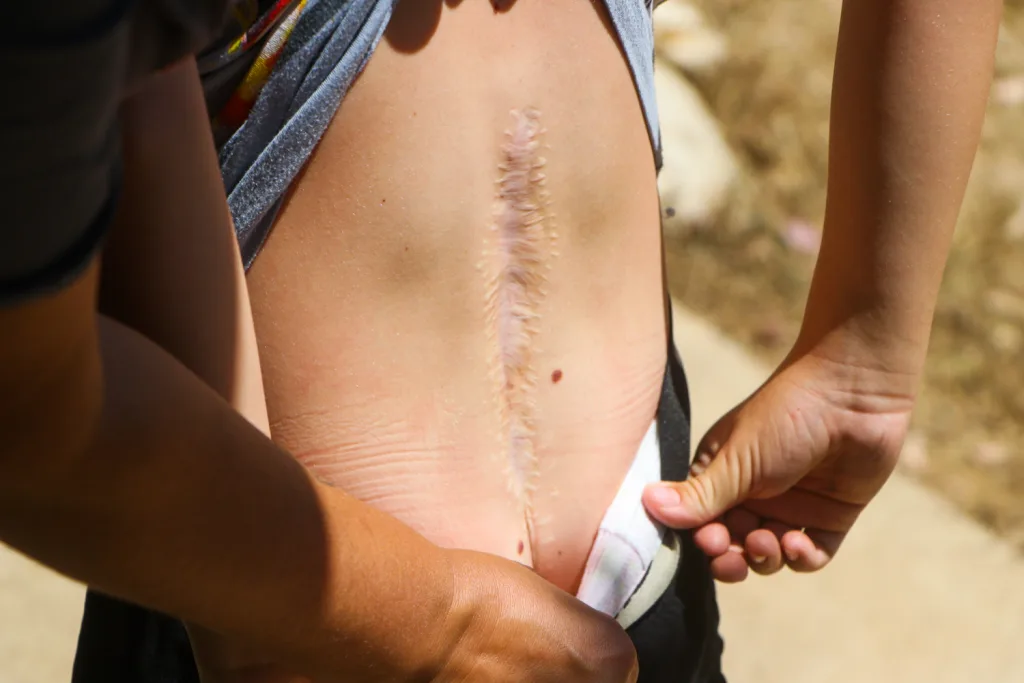 Moises apesar de sus limitaciones fisicas quiere hacer una vida normal como jugarA simple vista, el niño Moises no se le nota ninguna condición de salud, tan solo basta con levantar el posterior de su franela para evidenciar que su salud tiene argumentos de cuidado