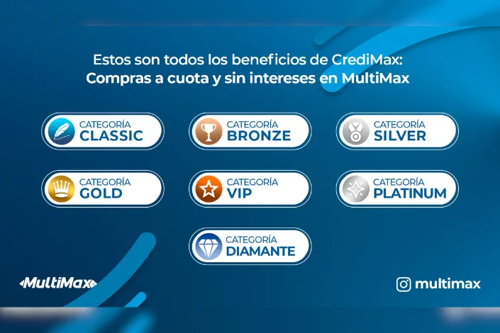 - Diamond: La máxima categoría de Credimax. Ofrece el mayor poder adquisitivo con $1,000 de crédito. Para las compras más grandes, mantiene la inicial en un mínimo de 10%, pero brinda la máxima flexibilidad de pago al permitir cancelar el saldo en 12 cuotas (un año).