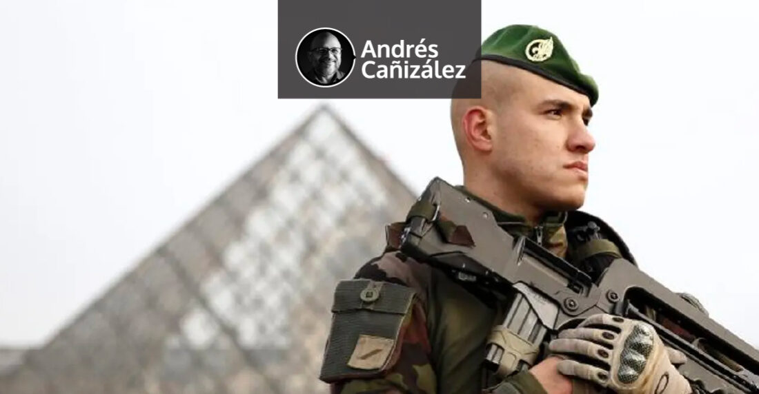 En la misma acera por donde caminaba me topé con una formación de tropas especiales de Francia. Militares altos y fornidos, todos con fusiles en posición de disparar, caminando en formación defensiva, cada uno cuidando las espaldas del otro. Eran 5 ó 6 en total. Caminaban por la acera mirando hacia las ventanas y azoteas de los edificios. No hubo disparos, pero estaban preparados para ello. No estaban paseando aquellos hombres.
