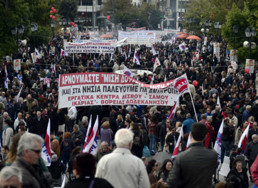 “No somos solamente cifras, merecemos condiciones de vida humanas”, gritaron los manifestantes en la plaza Syntagma, ante el Parlamento en Atenas.La protesta convocada por el Pame, el Frente de trabajadores, cercano al Partido Comunista congregó cerca de 25.000 personas de acuerdo con la policía. Los organizadores, en cambio, resaltaron que había representantes de un millar de organizaciones sindicales de los sectores público y privado, para denunciar “los 1,5 millones de desempleados oficiales y los más de 500.000 trabajadores que no han sido pagados desde hace varios meses”, según las pancartas.