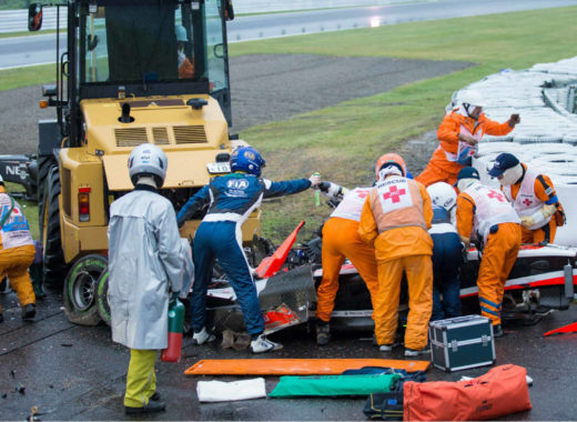 El piloto francés Jules Bianchi, de la escudería Marussia, lucha por su vida en un hospital de la ciudad japonesa de Mie, en el que fue operado de graves lesiones en la cabeza como consecuencia de un accidente sufrido durante el Gran Premio de Japón, disputado en Suzuka y en el que impactó con violencia contra una grúa que retirada otro vehículo accidentado