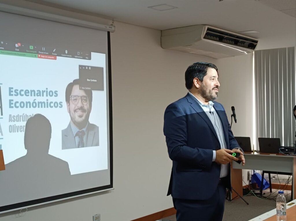 Economista Asdrúbal Oliveros, durante su presentación en el foro de prospectivas 2024.