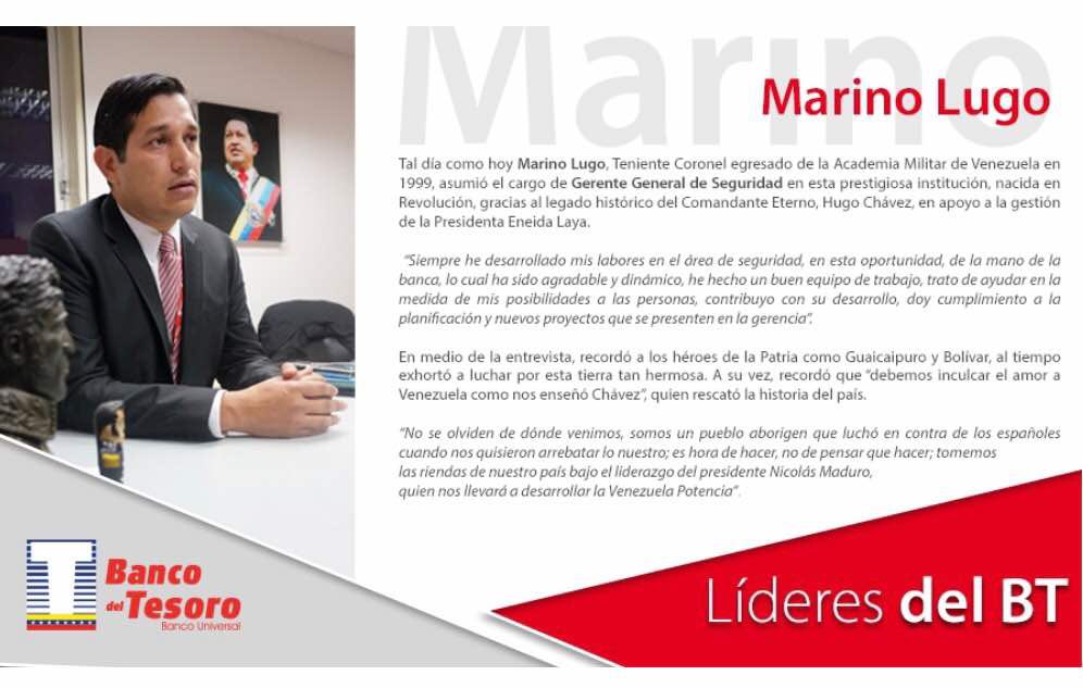 Investigaciones de Armando Info determinaron que el coronelMarinoLugo fue una de los gerentes de la estatal venezolana que dirigió el proceso paulatino de dolarización del precio de la gasolina. Este funcionario también ocupó el cargo de gerente general de Seguridad del Banco del Tesoro y estuvo en una filial de la Corporación Socialista de Cemento.