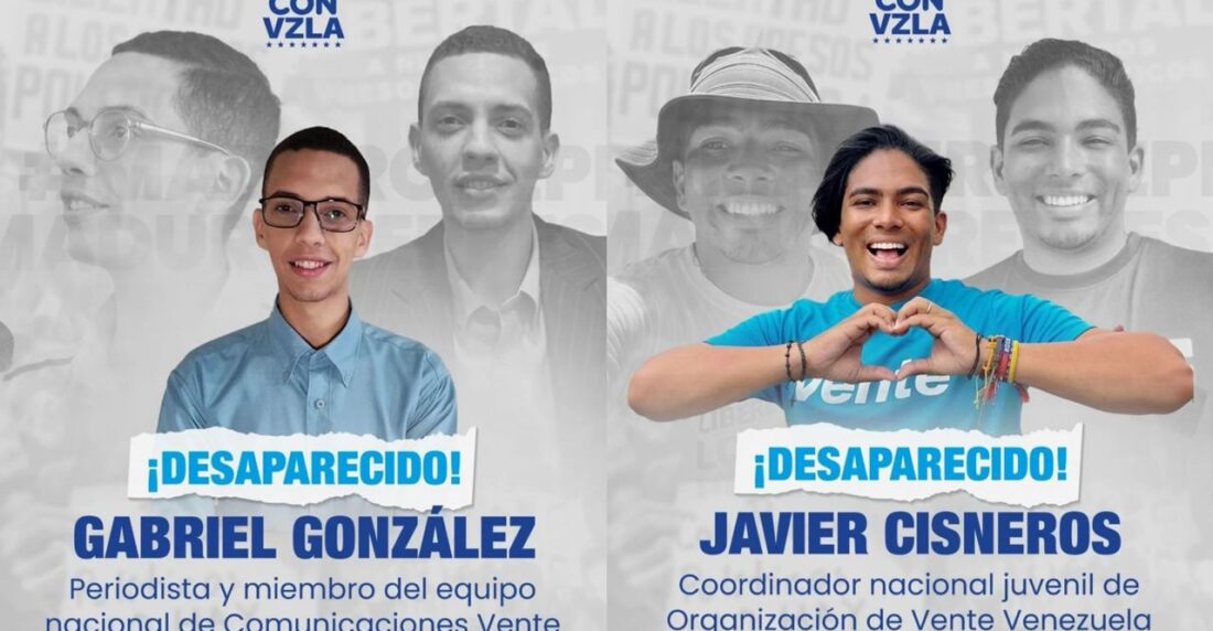 El partido de María Corina Machado denunció que la desaparición de Gabriel González, periodista del movimiento, continúa. Solo Javier Cisneros fue liberado
