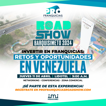 El próximo 11 de abril llega al Lidotel Barquisimeto la tercera edición del Profranquicias Roadshow, un evento itinerante producido junto a Jesús Somaza de IDI Producciones y Profranquicias, que reúne a grandes marcas franquiciantes, proveedores de bienes y servicios, emprendedores, inversionistas y público en general interesado en el mundo de las franquicias.