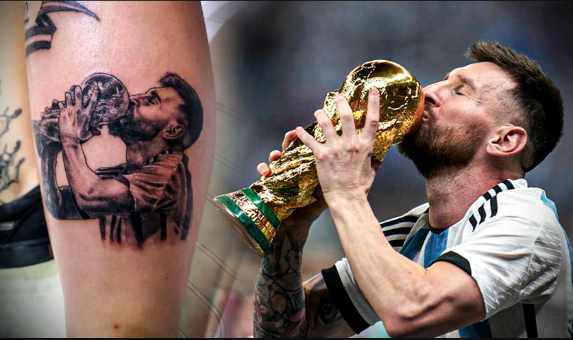 En su pierna izquierda llevará para siempre a un Messi vestido con camiseta albiceleste que la selección usó en el Mundial de Catar, besando la Copa dorada.