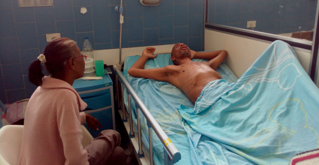 Pablo Rojas tiene dos meses internado en el Hospital Vargas con un tumor en el cerebro. Su piel fina y sin nada de grasa expone los huesos de sus costillas y clavículas. La estadía se alarga por falta de cupo en los quirófanos y la comida que le dan no le alcanza para alimentarse lo suficiente.