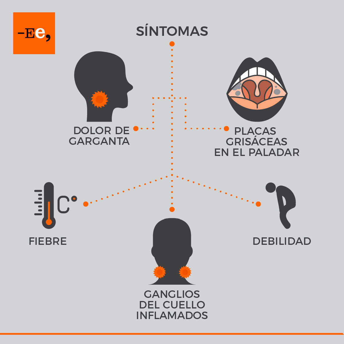 Los síntomas de la muchacha hacían sospechar que padecía difteria. Tiene fiebre, placas grisáceas en la garganta, dolor al tragar y los ganglios del cuello inflamados.