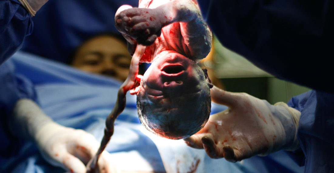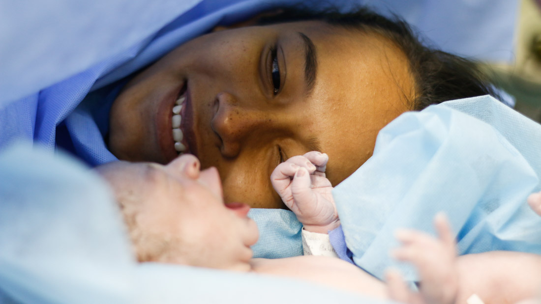 El procedimiento empezó a las 11:10 AM y para las 11:47 ya había alguien nuevo en el mundo. Omaira se encarga de pedir que le traigan el bebé a su mamá y se lo acerca para que lo conozca.