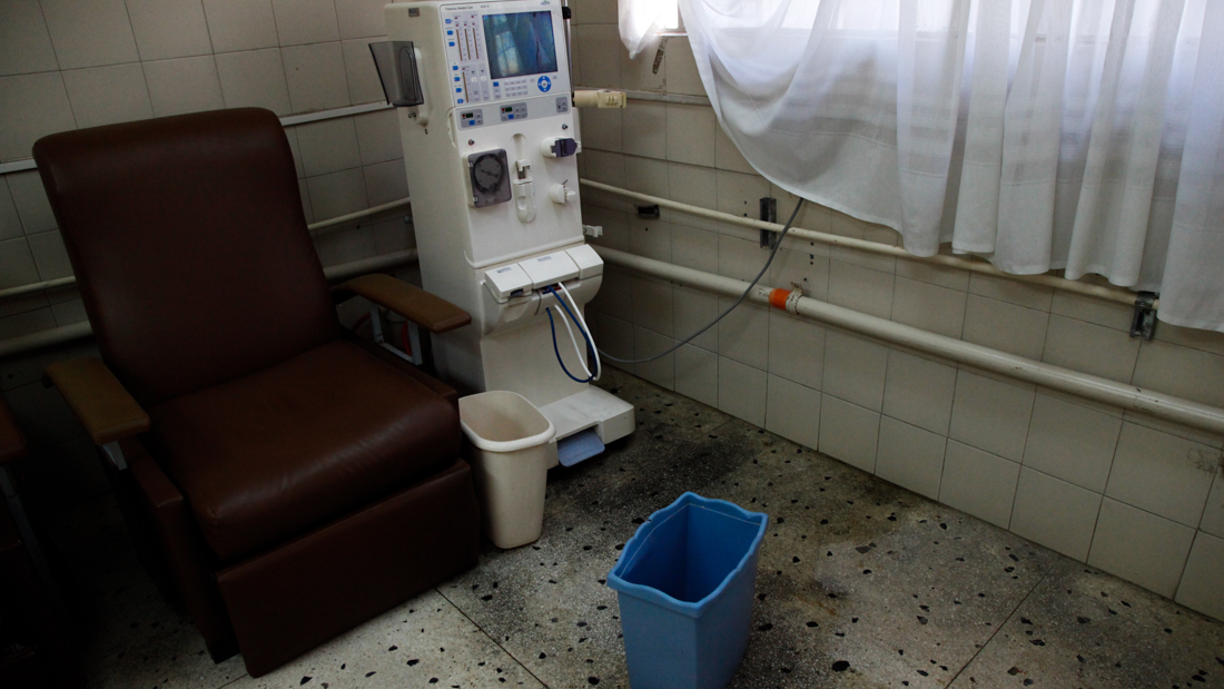 José Bastidas usa una camisa amarilla gastada y unos zapatos de goma. Sufre de hepatitis y tampoco va a dializarse hoy. “Estoy luchando por mi vida, aquí las condiciones no son óptimas”, dijo mientras mostraba las sillas en la sala de cuatro máquinas de diálisis para quienes son positivos en hepatitis, salón que él mismo llamó “cementerio de máquinas” porque de esas cuatro, solo una funciona. “Nosotros somos cuatro en esta sala y nos tenemos que turnar pero eso no debería ser”.