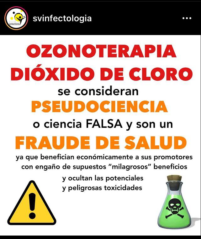 «Los promotores de la ozonoterapia dicen que supuestamente oxigena los tejidos y puede aumentar las citoquinas, que son células de respuesta inmunológica. Pero los estudios de ozonoterapia carecen de evidencia, ya que se han realizado con pocos individuos, muestras sesgadas, sin controles adecuados», alertan.
